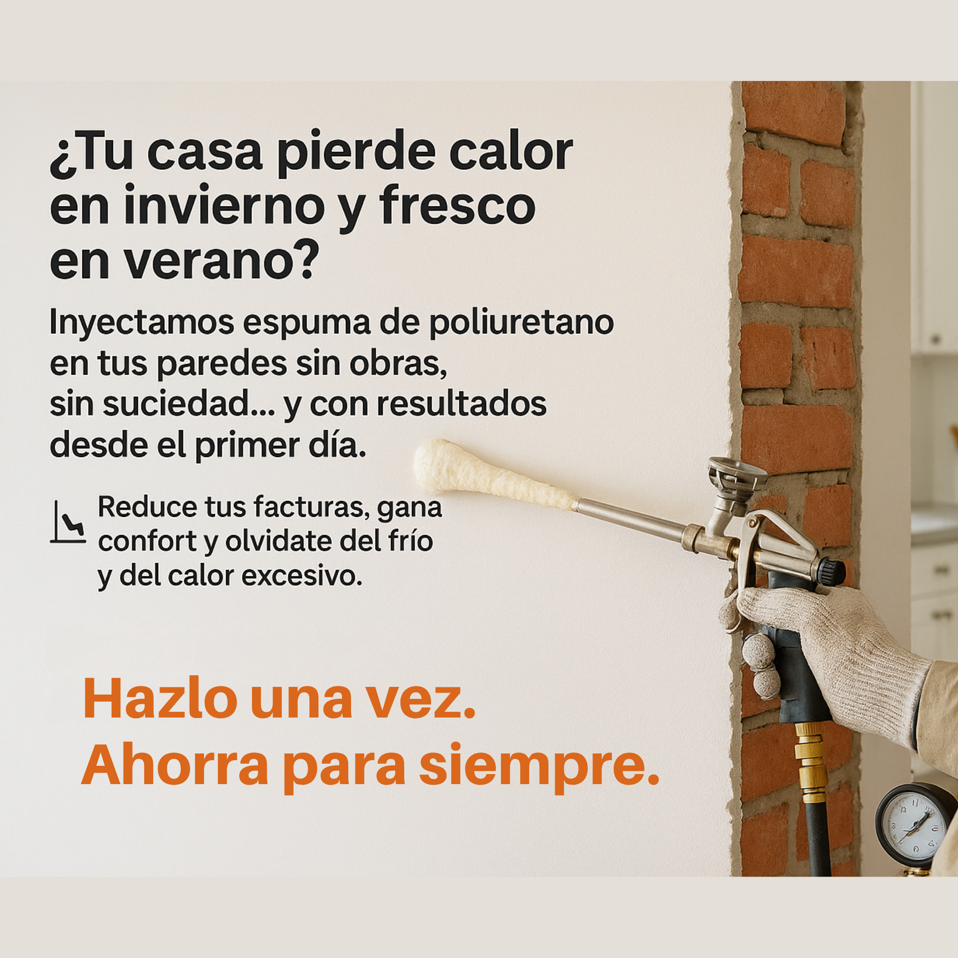 Cuando se inyecta espuma de poliuretano en la cámara de aire, se crea una barrera aislante que reduce ese intercambio de temperatura y suaviza muchísimo esa sensación de “pared nevera” o “pared radiador”.