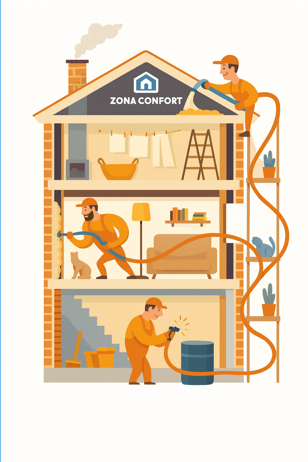 Aislamientos con Inyección de espuma de poliuretano. Insuflado de celulosa